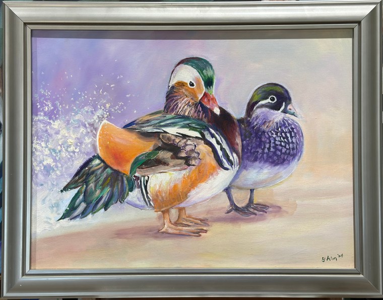 Mandarin duck couple for newlyweds Oil 24″x30″ for Gift of $1500 or more