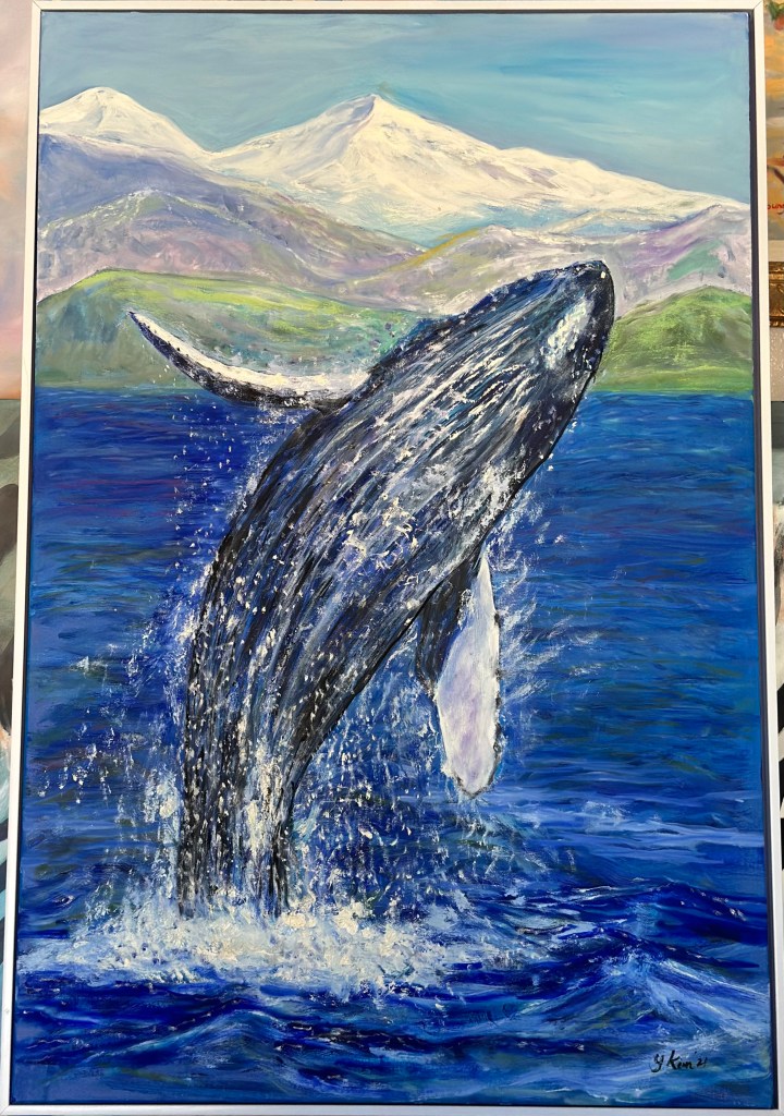 Jumping Whale Oil 36″x 24″ For Gift of $1400 or more
