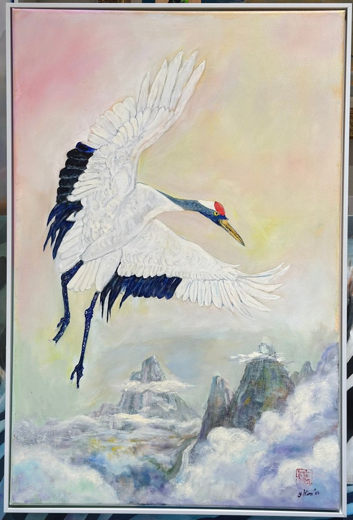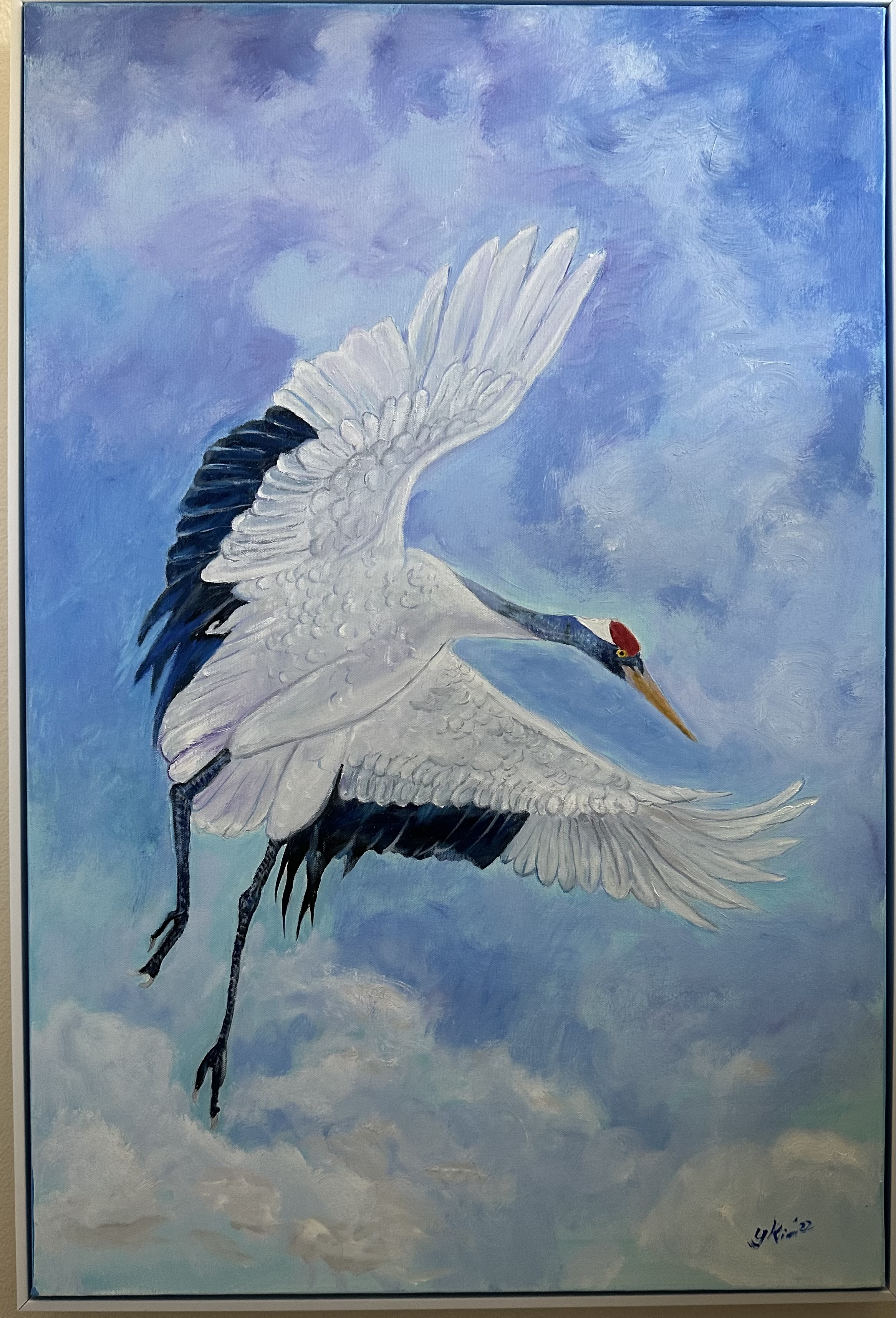 Crane in Blue Oil 36″x 24″ For Gift of $2000 or more