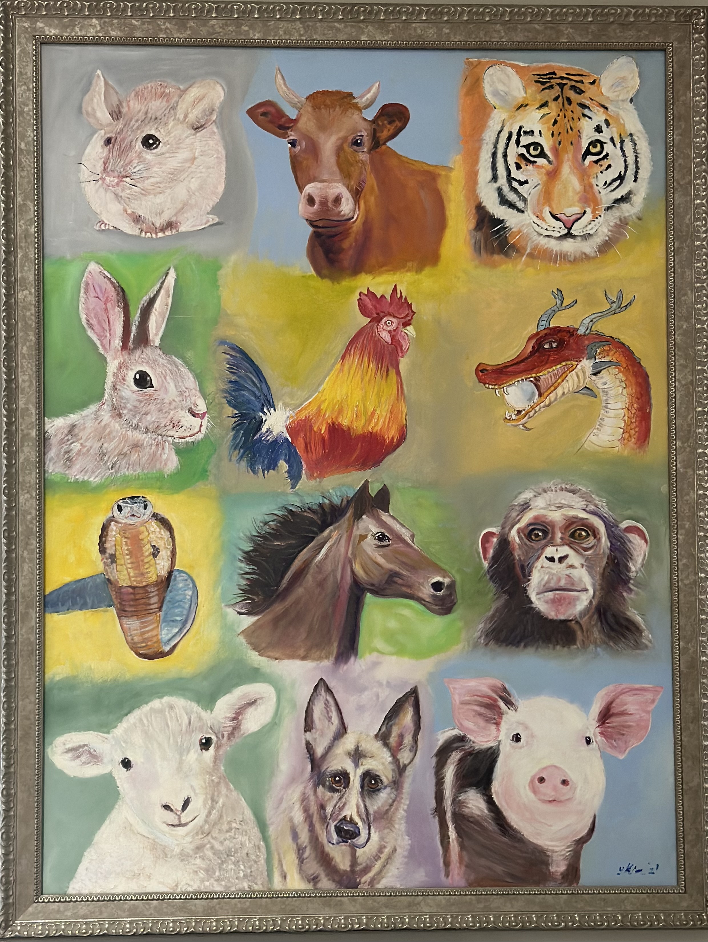 12 Animals Zodiac. 2024 is Dragon’s year. Oil 30″x40″ For Gift of $900 or more