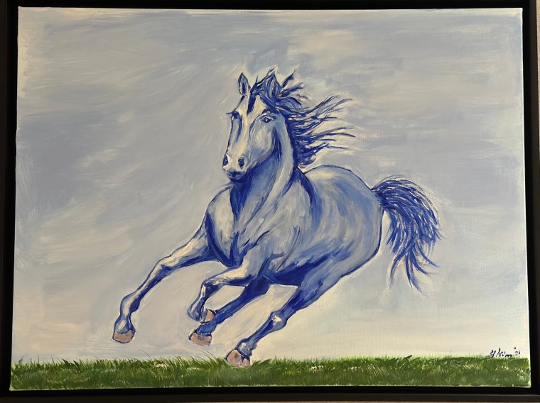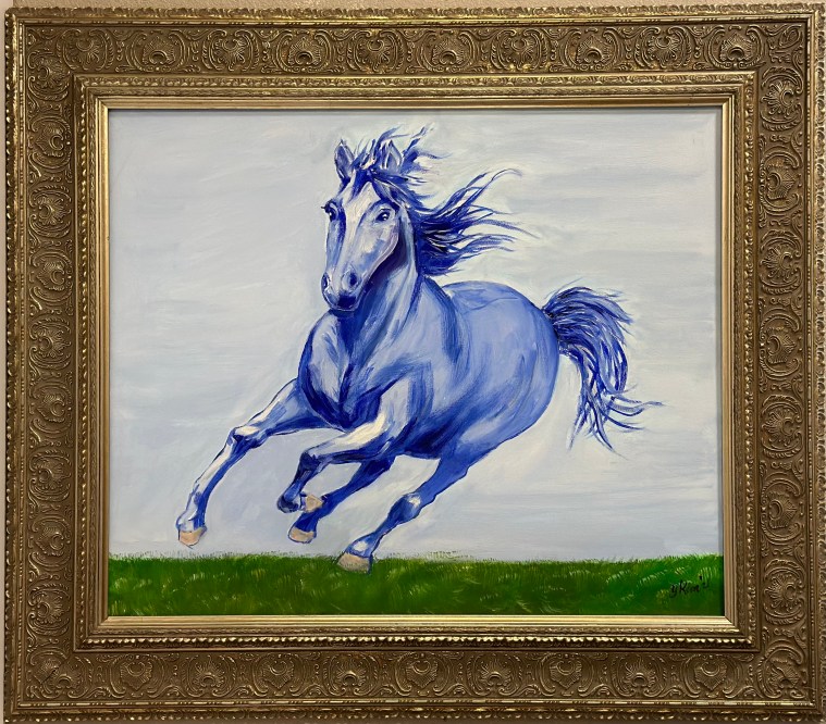 Blue Horse 2. Oil. 24″x36″. For Gift of $900 or more