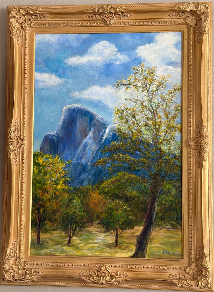 Half Dome, Yosemite Oil 24″x36″ in gold leaf frame For Gift of $1500 or more