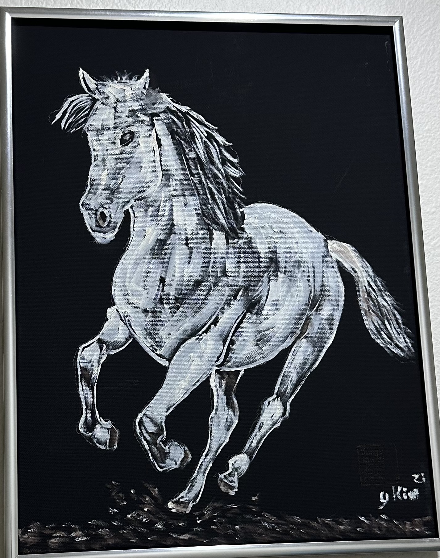 White horse in black Oil 16″x20″. Gift of $400 or more