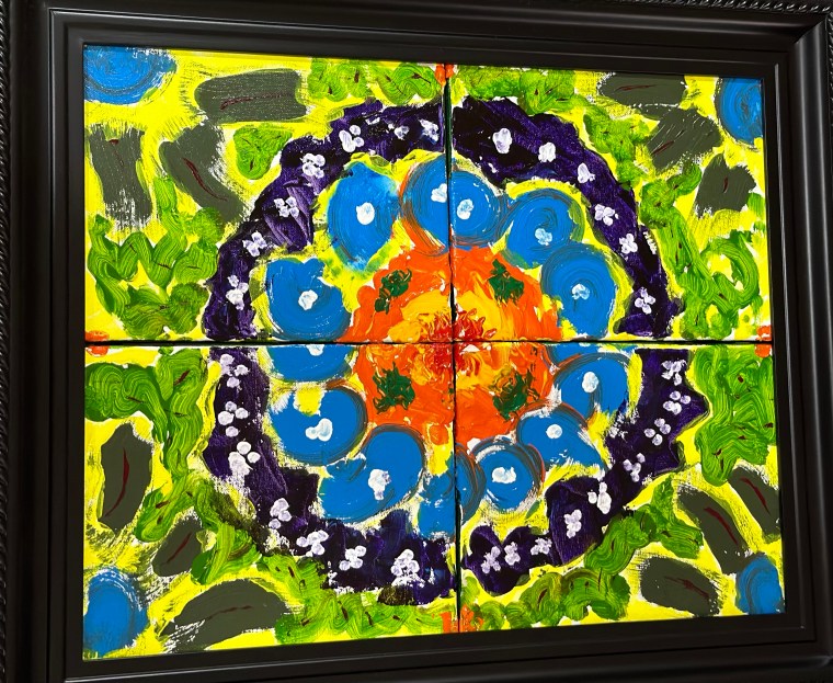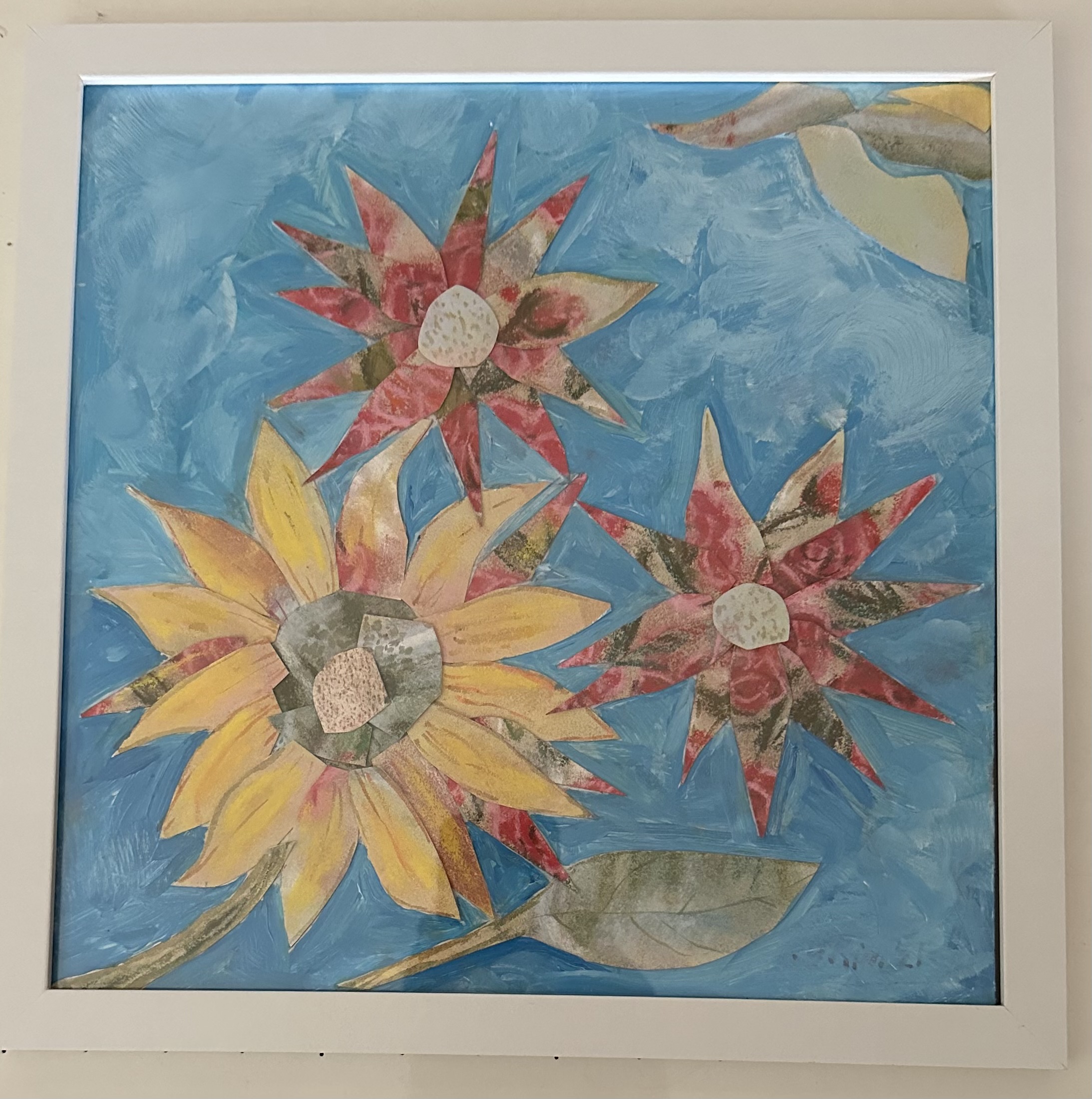 Sun Flower Acrylic on wood panel 8″ Gift of $100 or more
