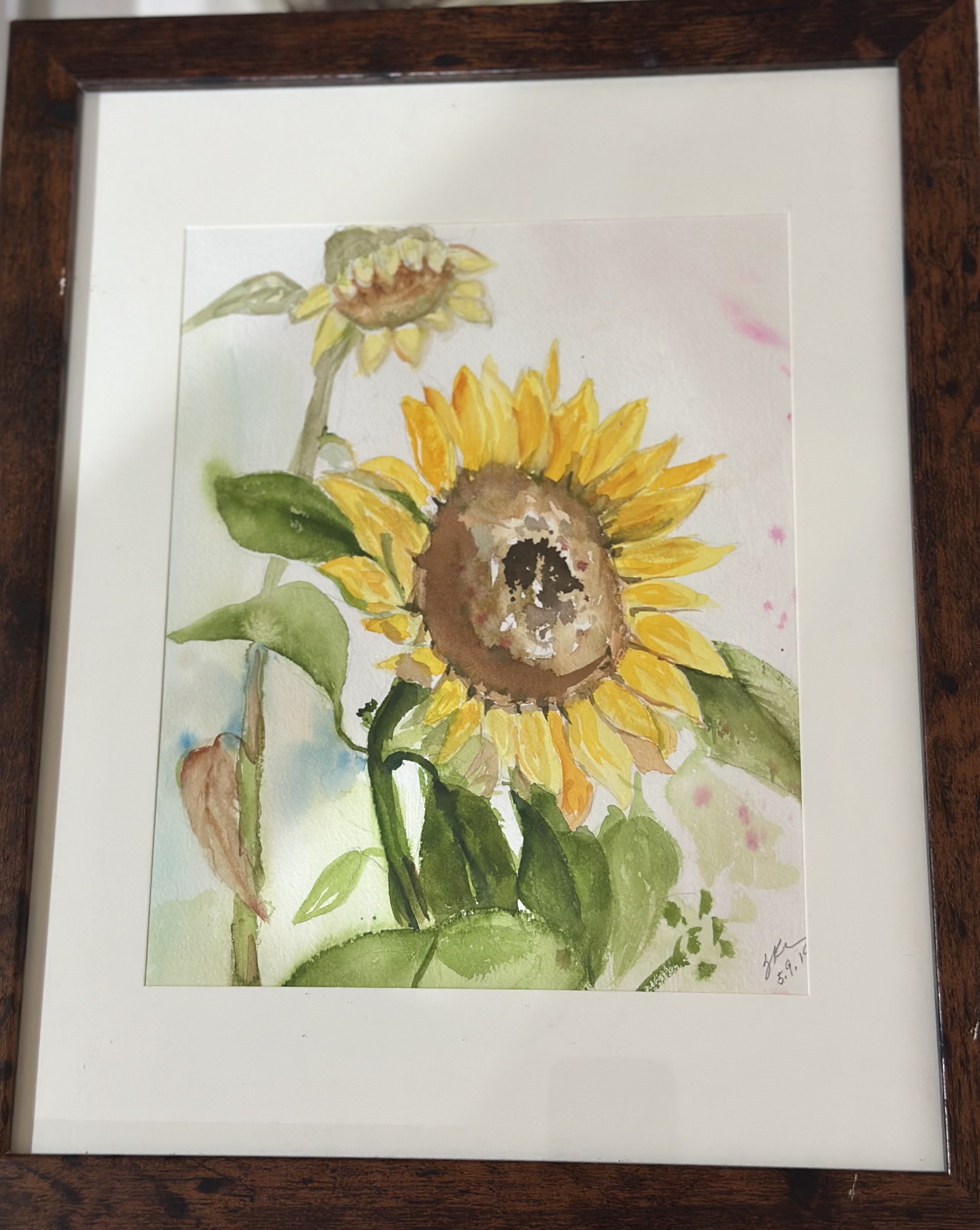 Sunflower 2. Watercolor. 13″x16″. For Gift of $250 or more