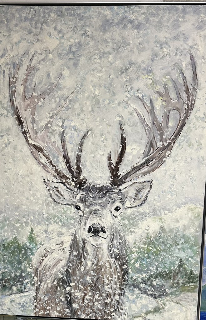 Deer in the snow Oil 24″x36″ For Gift of $1600 or more