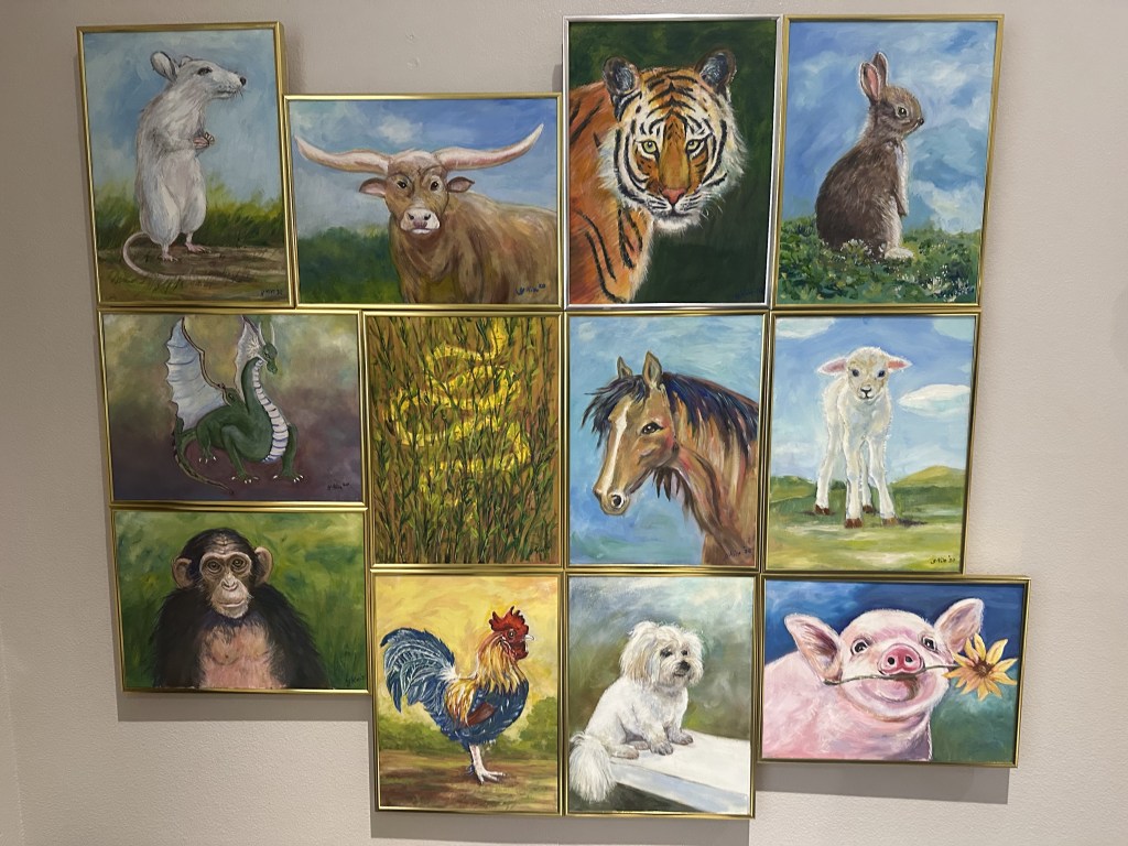 12 x Zodiac Animals 2 Oil 12x 13″x19″ detachable canvases Overall 48″x52″ For the Gift of $1500 or more